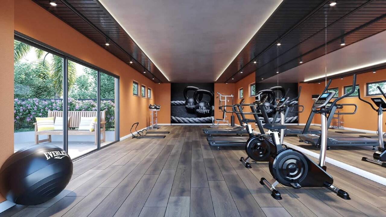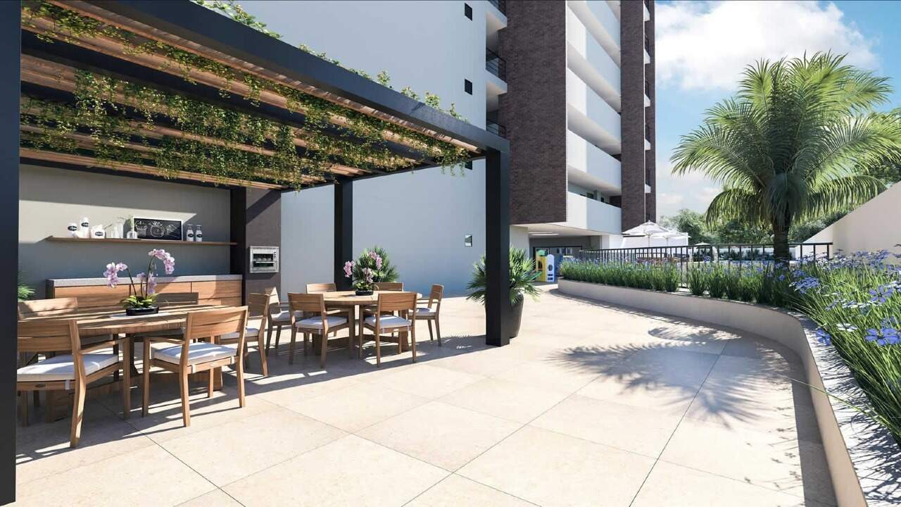 Sala, Cozinha, 2 quartos sendo 1 Suíte, 2 vagas de garagem, academia, piscina, lavanderia, salão de jogos, brinquedoteca, sala home office, móveis projetados